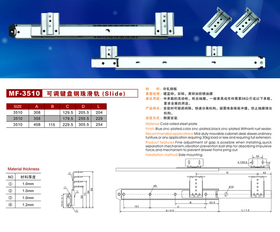 MF-3510可調鍵盤(pán)鋼珠滑軌