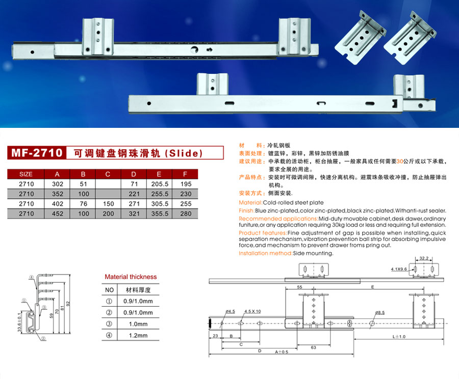 MF-2710可調鍵盤(pán)鋼珠滑軌
